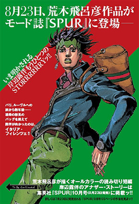Hirohiko Araki will draw a one-shot spinoff manga about a JoJo's Bizarre Adventure character for the October issue of Shueisha's women's fashion magazine Spur, which will ship on August 23.