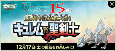 The official website for the Pokémon anime films revealed on Thursday that Gekijōban Pocket Monster Best Wishes! Kyurem Vs Seikenshi (Pokémon: Black & White the Movie - Kyurem Vs. the Sacred Sword Masters) will open in Japan next year. The website will have an update on December 17.