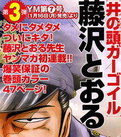 Next year's combined 4th/5th issue of Young Magazine is announcing on Monday that Tohru Fujisawa's new manga series is titled I no Head Gargoyle. The "I no Head " in the title is an apparent wordplay on the Tokyo locale Inokashira. Fujisawa, who previously created GTO and GTO: Shonan 14 Days, had revealed earlier this month that he will launch a new series in the magazine. I no Head Gargoyle will launch in next year's 7th issue on January 16.