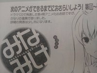 This week's issue of Kodansha's Young Magazine listed the previously announced new Minami-ke anime adaptation as its "4th season." The announcement also states that further details regarding the adaptation will be given at a later time. "Season" does not necessarily mean television — examples of video seasons include Maria Watches Over Us 3rd Season, Kimi ga Nozomu Eien ~Next Season~, and the "seasons" of Hellsing Ultimate.