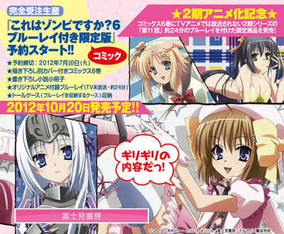 The Japanese publishing conglomerate Kadokawa announced that the sixth volume of Sacchi's Kore wa Zombie Desu ka? (Is This a Zombie?) manga series will bundle an original anime Blu-ray Disc in a limited edition on October 20. The included unaired episode 11 for the second anime season will be about 24 minutes long. The limited edition will also come with an exclusive illustrated variant cover, a novel booklet, and a tall case to contain the Blu-ray.