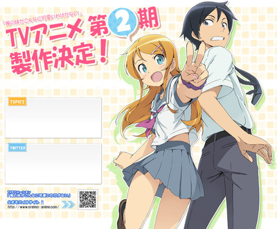 The cast of the Oreimo (Ore no Imōto ga Konnani Kawaii Wake ga Nai) television anime series announced during their "Yūichi no Manma 2 ~Taketatsu to Hanazawa ga Debut Suru Wake ga Nai~" stage event at Anime Contents Expo on Sunday that production on a second season has been green-lit.