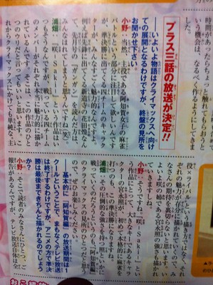On Tuesday, the July issue of Square Enix's Monthly Shonen Gangan magazine is publishing an interview with the Saki Episode of Side A anime staff that reveals that three more episodes will air, beyond the planned one-cours (one-quarter) allotment.