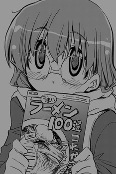 Let's Eat Ramen is the story of Saeki, a girl who loves ramen noodles. At last, she thinks that she has finally found the perfect ramen shop, but the problem is the shop is completely full of old regulars and she can't get in. Will the timid Saeki ever summon the willpower to reach out and get the ramen that she desperately wants?