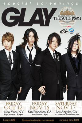 Live Viewing Japan, a Japanese "alternative contents" provider, is holding screenings of the concert film "Glay Stadium Live 2012 The Suite Room in Osaka Nagai Stadium supported by Glico" in California and New York.