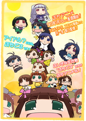 The four-panel manga depicts the overly hyper daily life of The IDOLM@STER's 765Pro idols — and mysterious creatures named "Puchidoru" who somewhat resemble the idols.