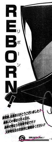 Akira Amano is ending the Reborn! manga in the 50th issue of Shueisha's Weekly Shonen Jump magazine on Monday. Shueisha will publish the 41st compiled book volume on December 4, and the 42nd and final volume will follow in March. Weekly Shonen Jump asks its readers to look forward to Amano's next work.