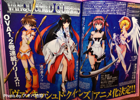 The January issue of Hobby Japan magazine is announcing on Saturday that an anime adaptation of the Queen's Blade visual book Vanquished Queens has been green-lit. The illustrated short stories in the 2011 book depict the defeats in battle of various Queen's Blade characters. The two video anime volumes will be bundled on disc with two new Queen's Blade Premium Visual Books next spring.
