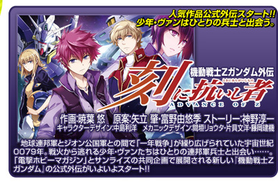 The January issue of ASCII Media Works' Monthly Comic Dengeki Daioh magazine launched a Mobile Suit Zeta Gundam spinoff manga on Tuesday. Yū Akiba is drawing the new manga, titled Advance of Zeta: Toki ni Aragaishi Mono.
