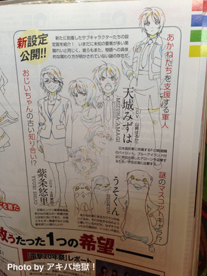 The January 2013 issue of ASCII Media Works' Dengeki G's Magazine is announcing on Friday that the Vividred Operation television anime series will premiere on the MBS station on January 10. It also revealed three new characters' designs and the voice cast members for two of them: