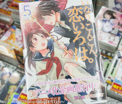 The wraparound jacket band on the fifth volume of Morohe Yoshida's romantic comedy manga Inari, Konkon, Koi Iroha is announcing on Saturday that an anime adaptation is in the works.