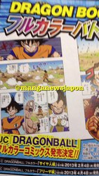 The February 2013 issue of V Jump announced on Friday that a full-color edition of Akira Toriyama's Dragon Ball manga will debut on February 4, 2013. The color edition will be released in three volumes spanning the Saiyan Arc. A price point for the books has not yet been listed.