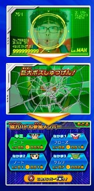The official website for Dragon Ball Heroes: Ultimate Mission, the Nintendo 3DS port of the 2010 Dragon Ball Heroes arcade card battle adventure game, has revealed that the 3DS version will include an extra augmented reality "Scouter" feature that will allow players to scan the faces of themselves and others to view their power levels. Scanning others will allow players to get items and Zeni, and if the power level of that person is high enough, a Great Ape Vegeta will appear and players can then battle Vegeta with their friends.