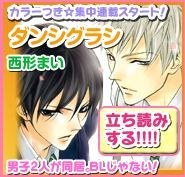 This year's third issue of Hakusensha's Hana to Yume magazine began serialization on Mai Nishikata's (Venus Capriccio, Sweet Black) newest series Danshigurashi on Saturday. The magazine is currently hosting a five-page preview of the series online. The tagline for the preview image at right reads "Two young men are living together. But it's not boys' love!"