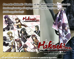 Aksys Games announced that it will release Idea Factory's Hakuōki: Warriors of the Shinsengumi PSP game on February 19 for US$29.99. Those who pre-order the game through Amazon will receive a Hakuōki headband. Packaging includes a 16-page full-color character guide featuring art from the game.