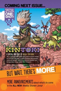 North American publisher Viz Media announced in its January 21 issue of its newly-relaunched Weekly Shonen Jump digital anthology that it will release Akira Toriyama's one-shot "Kintoki" manga in next week's issue. The one-shot follows a boy named Toki who is the last of his tribe of humans who possess monstrous strength.