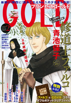 Aoike launched Shūdōshi Falco in the Summer 1991 issue of Hakusensha's Hanayōbi magazine , but put it on hold a year later. She picked up the series in Hakusensha's Melody magazine, only to put it on hold again a decade ago. Hakusensha published the manga's book volumes before, but Akita Shoten's Princess Comics imprint will begin publishing the volumes this summer. Princess Gold prepared readers for the return of the series by publishing the manga's first two chapters in a supplemental booklet last month.