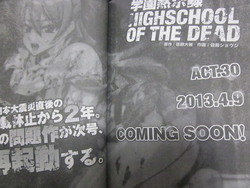 The April issue of Fujimi Shobo's Dragon Age magazine revealed on Saturday that Daisuke Satō and Shōji Satō's Highschool of the Dead manga will resume in the next issue on April 9.