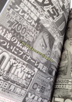 This year's 15th issue of Kodansha's Young Magazine is revealing on Monday that Shūichi Shigeno is "at last" heading toward the finale of his Initial D manga. However, the exact date of the final chapter has not been revealed yet. The magazine will be giving away Initial D goods to 715 readers of the magazine's 16th issue.