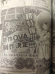 A magazine promotional image revealed that the next To Love-Ru -Trouble- Darkness anime will be an original video anime (OVA) project. The May issue of Shueisha's Jump Square magazine will reveal more details about the direct-to-video anime on April 4.