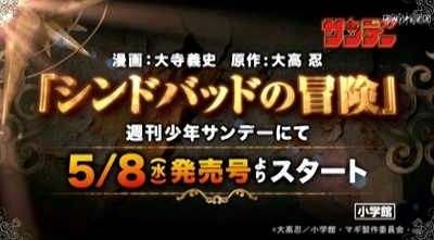 The Magi television anime series revealed on Sunday that Sinbad no Bōken (The Adventures of Sinbad), a side story to Shinobu Ohtaka's original Magi: The Labyrinth of Magic manga, will be turned into a full manga series on May 8. Yoshifumi Ōtera will once again draw the manga in Shogakukan's Weekly Shonen Sunday magazine.