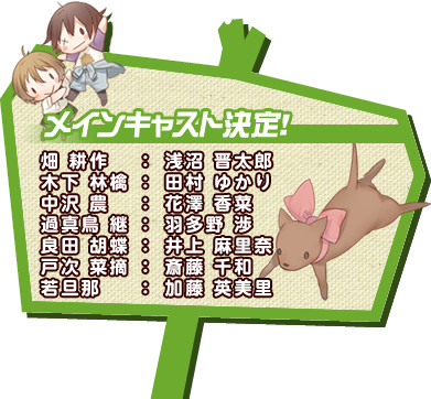 The official website for the anime adaptation of Shiratori Shirow and illustrator Kippu's No-Rin romantic comedy light novel series has revealed the anime's main cast. The cast remains unchanged from the drama CD version: