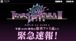 The official AQUAPLUS website for Tears to Tiara II: Haō no Matsuei (Tears to Tiara II: Descendants of the Overlord) revealed that new information on the PlayStation 3 game will appear in Enterbrain's Weekly Famitsu magazine on Thursday.
