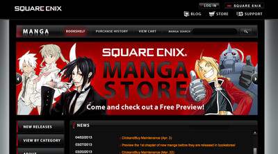 Square Enix revealed its e-manga store plans at Comic-Con International in July of 2010, and it offered the first chapters of Fullmetal Alchemist, Soul Eater, Black Butler, and O-Parts Hunter as previews. The North American store officially launched that December with volumes of Fullmetal Alchemist, Soul Eater, The Record of a Fallen Vampire, and Yumekui Kenbun: Nightmare Inspector.