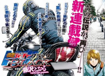 The combined 21st and 22nd issue of Shueisha's Weekly Young Jump magazine began serialization on Thursday of Tohru Fujisawa's Kamen Teacher Black manga. The new manga is a sequel to Fujisawa's 2006-2007 series Kamen Teacher. The new manga's tagline reads, "At a hopeless academy where demons dwell, the 'black' teacher swoops down to light the fire of hope into the students' souls once again."