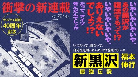 Shogakukan has announced that Nobuyuki Fukumoto (Tobaku Mokushiroku Kaiji, Tobaku Haōden Zero) will debut a new serialization titled Shin Kurosawa in the Big Comic Original magazine on May 20, to mark the 40th anniversary of the magazine. The story will be a sequel to Fukumoto's 2003-2006 comedy serialization, Saikyō Densetsu Kurosawa (The Legend of Strongest Man Kurosawa). The original manga told the everyday (sometimes tumultuous) stories of a blue-collar worker named Kurosawa, who wants to change his life and become popular after no one showed up at his 44th birthday.