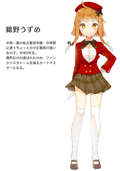 In this science-fiction story, Uzume is an ordinary second-year middle school student who comes into possession of five "dolls" who fight and power up with special cards.