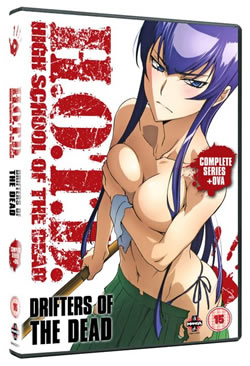 Manga Entertainment will release a new edition of the fanservice-heavy zombie series Highschool of the Dead (right). Unlike the previous releases, this one will include the OAV episode "Drifters of the Dead." There will be Blu-ray and DVD editions, but in both editions, the "Drifters of the Dead" episode will only be available as a DVD.