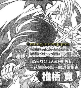 This year's 33rd issue of Shueisha's Weekly Shonen Jump magazine is announcing on Monday that Hiroshi Shiibashi is launching a Nura: Rise of the Yokai Clan spinoff manga series in the Jump Live app called Nurarihyon no Mago Gaiden ~Keikain Yobanashi~ Gankyū Shūshu-ki (Nura: Rise of the Yokai Clan Spinoff: Keikain Bedtime Story — The Eyeball-Collecting Demon). The story will revolve around the onmyōji Ryūji Keikain and a mysterious request he receives.