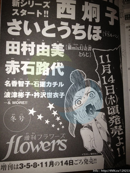 This year's fall issue of Shogakukan's Zōkan Flowers magazine announced on August 10 that Keiko Nishi will start a new manga in the magazine's winter issue, which will ship around November 14. The ad did not reveal any details on the series.