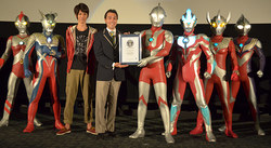The Guinness World Records committee recognized Tsuburaya Production's tokusatsu (special-effects) program Ultraman as the television series with the most number of spinoffs in the world on Thursday. The first Ultraman series premiered in 1966, and the most recent series, Ultraman Ginga (Ultraman Galaxy), just debuted in July. The 27 spinoffs are: