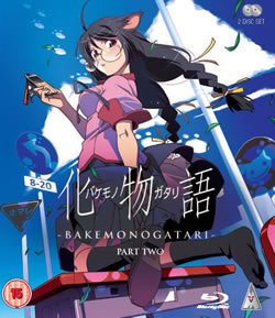 Also on Monday, MVM is releasing the second half of the series Bakemonogatari on Blu-ray. (The corresponding DVD was already released this July.) The series continues the weird and surreal adventures of a male student as he encounters various supernatural phenomona in present-day Tokyo, accompanied by a beautiful but intimidating girl. The series adapts NisiOisin's light novels. (The title Bakemonogatari is a wordplay on the Japanese term bakemono for supernatural creatures and the term monogatari for stories.)