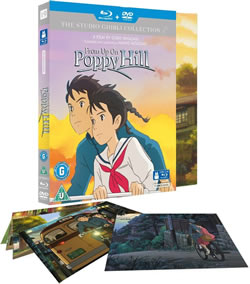 on Poppy Hill, the Studio Ghibli film directed by Goro Miyazaki set in the 1963 port town of Yokohoma. (The film recently had a limited cinema release in Britain). It will be released on DVD, on Blu-ray (left) and in a Combo Pack Collector's Edition (right); the latter includes artcards. The film features two Yokohama teenagers, Umi and Shun, who strike up a friendship while campaigning to save their school's clubhouse. Their relationship seems to be becoming something deeper, but then Shun makes a shocking discovery that throws the couple's whole future into doubt. The film was scripted by Hayao Miyazaki (director of Spirited Away, Princess Mononoke, father of Goro), who adapted the period story from a 1990 shojo manga called Kokuriko-Zaka Kara in Japanese, by Chizuru Takahashi (artist) and Tetsurō Sayama (story).