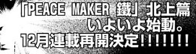 The September issue of Mag Garden's Beat's online manga reader announced on Wednesday that Nanae Chrono will resume the serialization of her Peacemaker Kurogane manga in December.