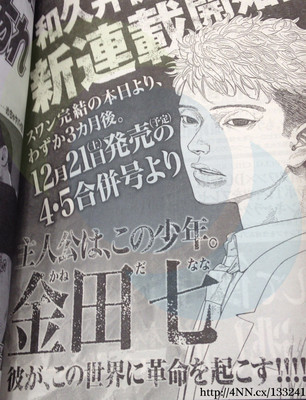 This year's 45th issue of Kodansha's Weekly Young Magazine is revealing on Monday that Shinjuku Swan author Ken Wakui will begin a new manga in the magazine's 2014 fourth and fifth combined issue, which Kodansha will ship on December 21. The tagline for the manga reads, "The main character is this boy: Nana Kaneda. He will cause a world-wide revolution!!"