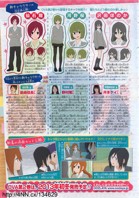 Asami Seto, Yoshitsugu Matsuoka, Kana Ueda, and Yoshimasa Hosoya are reprising their roles as Hori, Miyamura, Yuki Yoshikawa, and Tōru Ishikawa, respectively. Matsuoka (as Miyamura) is also singing the ending theme song. Nobunaga Shimazaki is joining the cast as Hori's estranged childhood friend and student council president Kakeru Sengoku (top left in image). Yui Nomura plays Sengoku's obedient student council member Sakura Kōno (top center) who literally runs into Hori. Kei Imoto plays Honoka Sawada (top right), the girl next door who is attracted to Miyamura.