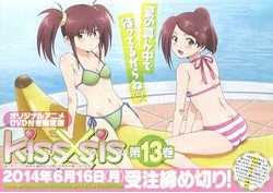 The 11th original anime DVD for Bow Ditama's Kiss×sis "forbidden" romance manga will be bundled with the limited edition of the 13th manga volume on August 6, 2014. Kodansha teases that someone can make out with the protagonist Keita in the next anime DVD.