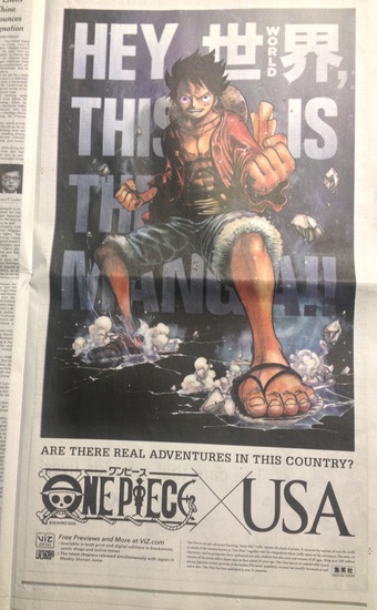 The New York Times ran a full-page advertisement for One Piece in its front section on page A15 on Thursday.