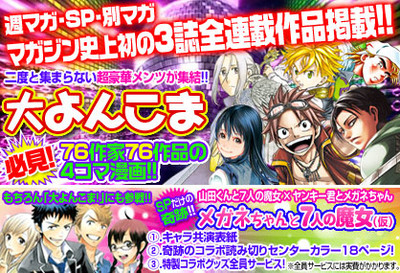 The January issue is also publishing 76 four-panel manga by 76 creators from not only Magazine Special, but also Weekly Shōnen Magazine and Bessatsu Shōnen Magazine.
