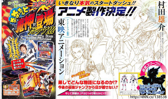 The January 2014 issue of Shueisha's Saikyō Jump magazine is announcing on Wednesday that Toei Animation is creating the Majin Bone anime project. Yūsuke Murata (Eyeshield 21, One-Punch Man) is designing the characters for the new anime.