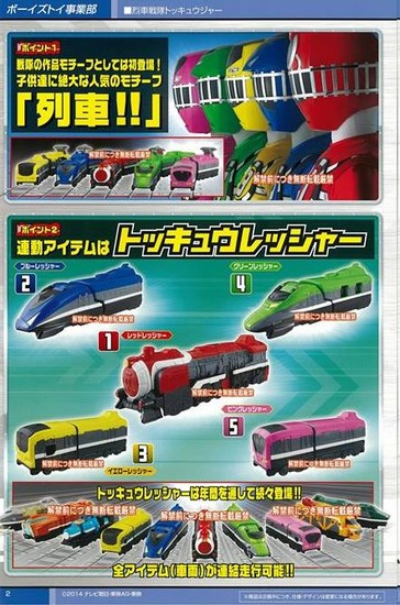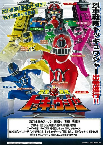 Bandai's toy catalog for retailers has unveiled the 2014 Super Sentai special-effects series Ressha Sentai Tokkyūger. The television series will premiere on TV Asahi on February 16, 2014 at 7:30 a.m.