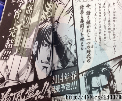 The ninth volume of Yūji Takemura, Nobuhiko Horie, and Tetsuo Hara's Gifū Dōdō!! Naoe Kanetsugu -Maeda Keiji Sake-gatari manga revealed on Friday that the series will end in the tenth compiled volume, which is scheduled to ship in spring 2014.