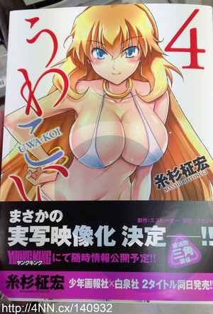 The wraparound jacket band on the fourth volume of Masahiro Itosugi's Uwa-koi manga announced on Friday that a live-action adaptation has been green-lit. Japanese company Gosent is presenting this production by SPO Entertainment (Antique Bakery, Ai Mai Mi). The announcement does not specify the adaptation's medium, but more information will be announced in the manga's current home, Shonengahosha's Young King magazine.