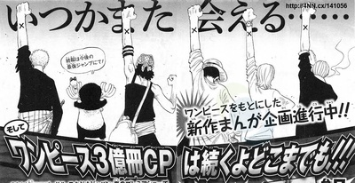 Hirofumi Takei is ending his One Piece spinoff manga Chopperman in the February 2014 issue of Shueisha's Saikyō Jump magazine on January 4. However, the magazine announced that a new manga based on Eiichiro Oda's original One Piece series is in the works. The magazine is also promoting next year's live-action Universal Studios Japan Premiere Show, which will let fans "meet Ace again." Shueisha is holding a design contest for the shirt that will be offered when the One Piece art exhibition heads to Taiwan.