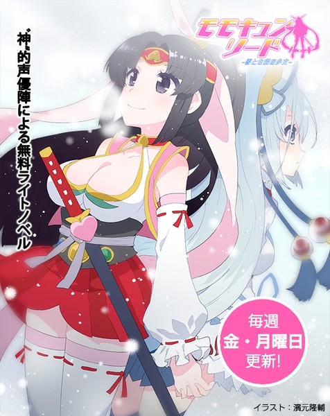 The official Twitter account for Kibidango Project's digital light novel Momo Kyun Sword announced on Friday that an anime adaptation has been green-lit. The official website began streaming an announcement video: "In 2014, the project's biggest mission launches. An anime adaptation of Momo Kyun Sword has finally been green-lit!!! Now in production!"