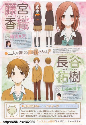 The February issue of Square Enix's Monthly Gangan Joker magazine is announcing on Wednesday that Sora Amamiya and relative newcomer Yoshitaka Yamaya will star in the Isshūkan Friends. (One-Week Friends) anime. Amamiya (Log Horizon, Wanna Be the Strongest in the World, Gaist Crusher) will star as Kaori Fujimiya, and Yamaya (Unbreakable Machine-Doll, Senran Kagura) will star as Yūki Hase.